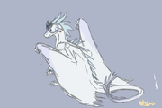 Upon meeting Sky, Snowfall thought of him as one of the weirdest dragons she had ever met, but had to admit to herself that the mix of amusement and slight confusion he brought her was much preferable to her typical overwhelming anxiety, and that she wouldn't have minded being distracted by him again.[94] After Snowfall compared her friends to friendly turtles on the inside, Sky gave her a gigantic grin.[95] She felt very worried for him before he left for Pantala,[96] and wanted him to be able to access the Ice Kingdom anytime he needed her.[97] When she returned to the Ice Kingdom, Snowfall built a snow sculpture of a snail in his honor, and Lynx teased her for thinking about him so much.[98] Once Snowfall returned to the Ice Kingdom, she realized that Sky reminded her a lot of Mink.[92] She does not have a romantic attraction to him, and instead, is enchanted by how odd and funny he is.[99]