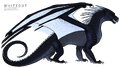 Whiteout had black scales with hints of dark sapphire blue, a narrow, elegant head like an IceWing's, and startling pale[1] blue eyes similar to those of her father, Arctic.[2] She had icy bluish-white wing membranes that were dotted with a scattering of black scales that gleamed like jet. Her sharp, curved claws and the spines along her back were also icy bluish-white.[2] Her eyes were the same shape as Sunny's, although Sunny's are greener, according to Darkstalker.[3] She was said to be quite beautiful.[4]