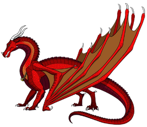 Flame is part of the Gold Winglet at the Jade Mountain Academy. He was suspected to be the murderer of Bigtail and Carnelian, but Moonwatcher concluded that he was innocent, as he thought, "I wish I'd done it, everyone would take me seriously...but I wouldn't hide it, I'd roar it to the world..."