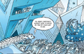 The palace's interior has translucent walls[5] and icy floors, and is marginally warmer than its exterior.[6] The treasury is a guarded vault that is located near the center of the palace.[7] Some of the floors are covered in shards of ice.[5]