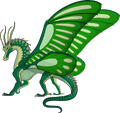 Luna has pale[1] pearly[2], green scales[1] of an elegant caterpillar color[3], with gold flecks along her back and tail.[4] She had whorls of cobalt and gold in her wingbuds[5], and after her Metamorphosis, her wings are described to look like cascading petals of green sunlight.[6] She may have similar features to a Pyrrhian dragon tribe due to Qibli mistaking her for a hybrid. She is also described as having amber eyes.