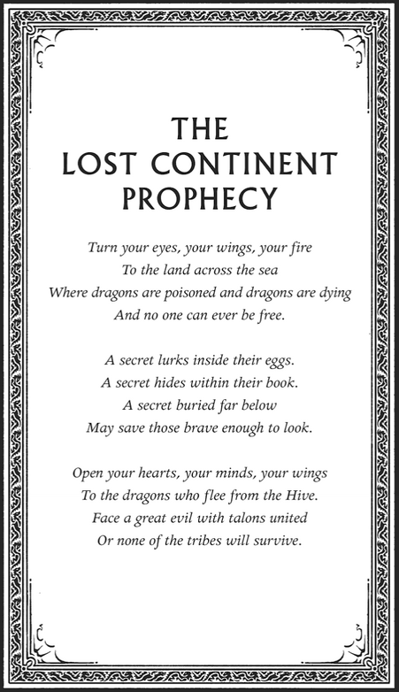 Template:SpoilerTHQ The Lost Continent Prophecy is the one that revolves around the third arc. It was revealed on April 26th, 2018. The prophecy was told by Moon in the prologue of The Hive Queen.[1]