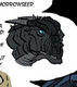 Morrowseer had black-on-black scales[1] that were described to look like a bottomless pit.[2] The star scales on the underside of his wings curled inward like a snail shell[3] and glittered from a great distance, casting a cold glow.[2] He had heavy talons,[4] black eyes, a black snout, strong claws[5] and bright white teeth, as well as light gray spikes running down his back.[1]