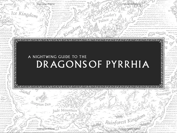 [[File:NightWingGuideToTheDragonsOfPyrrhia.jpg| | [[File:NightWingGuideToTheDragonsOfPyrrhia.jpg|620px|center|thumb|The cover page of the scroll from ''[[The Dragonet Prophecy (Book)|The Dragonet Prophecy]]'' to ''[[The Brightest Night (Book)|The Brightest Night]]''.]] | ||