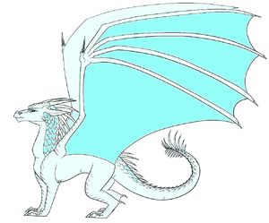 IceWings are a tribe of Pyrrhian dragons with scale colors that vary from different shades of white, gray, silver, pale blue, or light purple and occasionally but rarely sky blue. IceWings have lethal frostbreath, whip-thin tails, serrated claws, and the ability to withstand subzero temperatures. They live in the northwestern area of Pyrrhia, or the "head of Pyrrhia", known as the Ice Kingdom, which is known for its cold winds, freezing temperatures, and the Great Ice Cliff. The IceWings supported Princess Blaze during the War of SandWing Succession, joining her alliance with the promise of a large portion of land near the SandWings' northern border if she won.