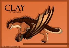 Template:Infobox Character  Clay is a male MudWing, a dragonet of destiny, and the main protagonist of The Dragonet Prophecy, the first book and the beginning of the Wings of Fire series. He is resistant to fire, extreme heat (like the heat of Peril's talons or scales) and even has an extremely high resistance to lava. This is because he hatched from a red egg the color of dragons' blood (although this resistance only activates once the dragon is first exposed to mud). Fire and heat still hurt him, but the burns heal extremely fast so it is similar to being immune to fire. Clay was depicted as muddy brown with shimmering amber undertones. The browns in his scales were described having a richer and deeper color when in the sunlight, like mahogany. He is very loyal to his friends, seeing them as his siblings, and he always seems to be hungry or thinking about food, and tends to dream about large feasts.