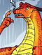 While Qibli tried to duplicate his earring in Turtle's bowl, Peril entered the cave to see what he was yelling at. She began scolding the bowl in an attempt to make Qibli feel better. He told her that the bowl was used to duplicate objects, but he could not remember the command to duplicate. Peril suggested adding "please" to the end of his guesses as Turtle would. Once he successfully began duplicating the earring, he tried to give her one to see if it would work on her. Peril refused, being careful after the episode with the necklace, adding 'But it won't survive long enough to do anything to me anyway.' Though she tried putting the earring on, but it melted as soon as it touched her. When Qibli remarked that it shielded the wearer from Darkstalker's spells, she retorted that she would not need it anyway, proving that she was still under Darkstalker's spell. When Qibli wondered where Ostrich and Onyx went, Peril told him she saw two SandWings leaving the school a little while back and thought they would be back after everyone calmed down. She followed Qibli around a little bit before he left for the Scorpion Den. Later, Peril was shown during the first attack of the Battle of Jade Mountain, threatening to burn every dragon who dared to hurt Clay. She also threatened to burn every dragon unless they "talked everything out," which did not work due to the arrival of the rest of Darkstalker's and newly crowned Snowfall's army. She also had a small point-of-view in the epilogue of the book. Peril finally became a student at Jade Mountain as part of the Jade Winglet, and wanted Starflight to make fireproof scrolls for her after he and Tamarin finish their project on making scrolls blind dragons could read. She went to the prey center looking for RainWing food to set on fire and cook, and she met up with Clay. She and Siamang, a RainWing from the Quartz Winglet, had apparently started hanging out and "invented" a "cooked mashed-up apple thing that is awesome." Clay then told her that it is applesauce and that it was already invented. Peril retorted saying that theirs was probably the best. She then asks him if they could go flying together, and Clay said he would love to. |