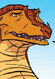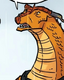 Soar has warm[24] golden-orange scales,[25] large[26] orange wings,[26] and hooded[27] amber eyes.[28] He has no visible scars, long horns with faint golden markings on them,[24] and a deeper, stronger voice than that of Chameleon.[3] He also looks wealthier than the average SkyWing: he wears gold rings on three of his claws, a black leather[29] necklace with gold spikes circling his throat, and an armband weaving like a snake all the way up one of his forelegs, with tiny rubies glittering like eyes at one end.[24] He has a black metal sheath fitted tightly across his chest with a padlock on the outside,[24] containing a small pouch full of coins or jewelry, and formerly a piece of Darkstalker's scroll wrapped in black leather binding.[30] He is large[25] and strong-looking.[29]
