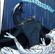 Shapeshifter has black scales,[15] narrow black eyes,[16] and was described to be angry-looking,[17] ominous,[18] eerie, and still.[19] He is quite large,[20][21] described as hulking and enormous,[20] with sharp talons[15] like wicked fishhooks.[19] He wears a mess of dark jewelry and compact iron boxes on chains,[22] including a case that held Darkstalker's talisman around his chest,[17] as well as a silver earring,[4] three bracelets, a ring, and a couple of necklaces.[23] He has extra strength, extraordinarily hot fire, and invulnerable scales.[23]