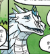 Hailstorm is tall,[1] with silvery[2] white-and-blue scales,[3] long glittering silver-and-white wings,[4] and fierce white claws.[5] His sharp, alert[6] eyes are as blue as the arctic sky,[7] bluer than Icicle's or Winter's,[8] and they crinkle around the edges when he smiles.[8] He is large,[9] with a snout that is longer and narrower than Pyrite's,[7] and sharp, silvery spines.[7]