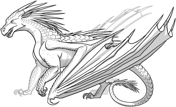 The head of an IceWing is shaped like a diamond and is very narrow, with spikes continuing down their back and tail and a ruff of extra spikes behind their heads. They are usually lean dragons with whip-thin tails that have icicle-shaped spines, ending in very sharp tips. They have serrated claws for gripping the ice.[7] Some IceWings have unusual patterns, such as Lynx, with dark freckles or markings on their faces and wings,[16] and Mink, with feathery patterns of gray along her wings, like whiskers or tufts of fur.[10]