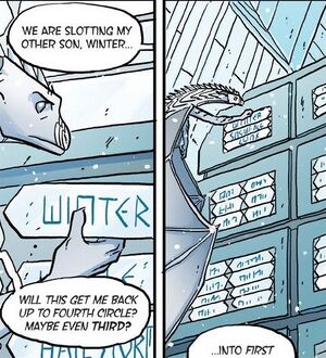 Tundra adjusting Winter's rank on the ranking wall to first from Winter Turning (graphic novel), by Mike Holmes