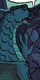 Moonwatcher is small,[1] with cool,[2] smooth, shiny[3] purplish-black scales that are imbued with hints of dark blue and green.[4] She has one glittering silver scale on the outside corner of each of her dark green eyes,[5] like a teardrop about to fall.[6] These scales are bigger and shinier than Fatespeaker's. She has powerful muscles,[2] black wings,[1] and frequently has small furrows crossing her forehead, as though she has a perpetual headache.[7] Secretkeeper describes her scales as "gleaming as though they'd been polished" and thought that she looked healthier than the NightWings who were raised on the volcano.[6]