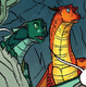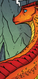Upon first meeting his daughter, Chameleon smiled.[75] After talking with him, Peril realized that he sounded a lot like herself, and they were able to bond over other dragons misunderstanding them.[76] As soon as Chameleon had realized that Peril was his daughter, he rushed to meet her; additionally, he described her as powerful, amazing, and terrifying, stating "Who wouldn't be proud of that?"[77] He acknowledged his absence in Peril's life, but stated that he would like to change that by giving Peril a necklace that would take away her firescales.[78] He trusted her with the secret of his animus shapes and stated that his loyalty was to Peril first and to Scarlet second.[39] After Chameleon revealed that he had been the one who had attacked Kinkajou, Peril was appalled at him. Though Peril felt that she should be the one empathizing with her father, she still felt what he did to Kinkajou was brutal and unnecessary.[67]
