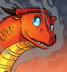 Peril is the daughter of Kestrel and Soar. Their egg held two dragonets — a very rare occurrence — but while Peril was still in the egg, she absorbed her brother's fire, leaving him with none and Peril with too much. Dragonets like Peril — referred to as having "firescales," — were usually thrown off the highest mountain peak in SkyWing culture, but Scarlet said that she would allow Kestrel to keep one of her dragonets so long as she killed the other. Kestrel chose to kill Peril's brother, Sky, whom she thought was weaker and would not survive anyway, by dropping him in a river. However, Scarlet reversed the order and told Kestrel to kill her other dragonet as well. Kestrel tried to flee with Peril, but was too badly burned by her dragonet's firescales and was forced to drop her before fleeing, leaving Peril at the mercy of Queen Scarlet. Since then, Peril spent her childhood and early adult life as Queen Scarlet's puppet. Scarlet used her in gladiatorial arena battles for the queen's own entertainment, and ordered her to kill dragons who had displeased her. She also deceived Peril into trusting her by lying about her past; Scarlet told Peril that she killed her brother in their egg, and that Kestrel had tried to kill her, but Scarlet saved Peril and sentenced Kestrel to death. Scarlet also manipulated Peril into believing that she had to eat black rocks, possibly coal, every day to survive with firescales as a ploy to force Peril to both rely on Scarlet and stay within the Sky Kingdom. Peril once tried not to eat them, as she was mad Scarlet would not tell her more about her mother, and Scarlet put poison in her food so Peril would become extremely sick, causing her to assume it was because of avoiding the black rocks. As a young dragonet of about a year-and-a-half-old, Peril was kept in a cage of black rocks, similar to the ones she "had to" eat, by Scarlet. On the day before the brightest night, Scarlet had her demonstrate her deadly capabilities to Burn, Hawk, Vermilion, Princess Ruby, the rest of Scarlet's children, and the SkyWing court by burning seven out of the eight SkyWing eggs scheduled to hatch on the brightest night to ash. Peril seemed worried that Scarlet would be mad at her for burning the first egg handed to her, and hesitated before Scarlet ordered her to burn the rest of them. Peril could burn through any substance but solid rock, making her nearly invulnerable, yet cursed, as she could not touch any other dragon without burning them, besides Clay and other MudWings hatched from blood-red eggs. Due to her invulnerability and ability to easily burn opponents to death, she was raised by Queen Scarlet to become her arena champion, where she killed hundreds of dragons in the arena without a second thought, becoming a "monster" who did not know how to be "nice." Thanks to Queen Scarlet, killing was the only thing Peril knew and was "good" at. |