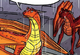 While Qibli tried to duplicate his earring in Turtle's bowl, Peril entered the cave to see what he was yelling at. She began scolding the bowl in an attempt to make Qibli feel better. He told her that the bowl was used to duplicate objects, but he could not remember the command to duplicate. Peril suggested adding "please" to the end of his guesses as Turtle would. Once he successfully began duplicating the earring, he tried to give her one to see if it would work on her. Peril refused, being careful after the episode with the necklace, adding 'But it won't survive long enough to do anything to me anyway.' Though she tried putting the earring on, but it melted as soon as it touched her. When Qibli remarked that it shielded the wearer from Darkstalker's spells, she retorted that she would not need it anyway, proving that she was still under Darkstalker's spell. When Qibli wondered where Ostrich and Onyx went, Peril told him she saw two SandWings leaving the school a little while back and thought they would be back after everyone calmed down. She followed Qibli around a little bit before he left for the Scorpion Den. Later, Peril was shown during the first attack of the Battle of Jade Mountain, threatening to burn every dragon who dared to hurt Clay. She also threatened to burn every dragon unless they "talked everything out," which did not work due to the arrival of the rest of Darkstalker's and newly crowned Snowfall's army. She also had a small point-of-view in the epilogue of the book. Peril finally became a student at Jade Mountain as part of the Jade Winglet, and wanted Starflight to make fireproof scrolls for her after he and Tamarin finish their project on making scrolls blind dragons could read. She went to the prey center looking for RainWing food to set on fire and cook, and she met up with Clay. She and Siamang, a RainWing from the Quartz Winglet, had apparently started hanging out and "invented" a "cooked mashed-up apple thing that is awesome." Clay then told her that it is applesauce and that it was already invented. Peril retorted saying that theirs was probably the best. She then asks him if they could go flying together, and Clay said he would love to. |
