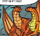 Despite feeling that something was wrong, Peril tried to convince herself that Chameleon gave her the necklace because he loves her and understands what it is like to be different and the desire to be normal.[79] However, as soon as Peril discovered that he had tricked her with the necklace, he quickly offered other alternatives with magic, to which Peril declined, bristling.[80] After stating that she could not trust him, he wilted a little, but Peril was far from feeling sorry for him.[81] She considers him one of the worst dragons she has ever met after Scarlet.[68] When he escaped from the Sky Kingdom, he said nothing to Peril, causing her to believe that he maybe had not thought of her at all,[82] despite her deliberately not telling Ruby about his shapes because he loved them so much and she wanted to leave him part of his magic.[83]