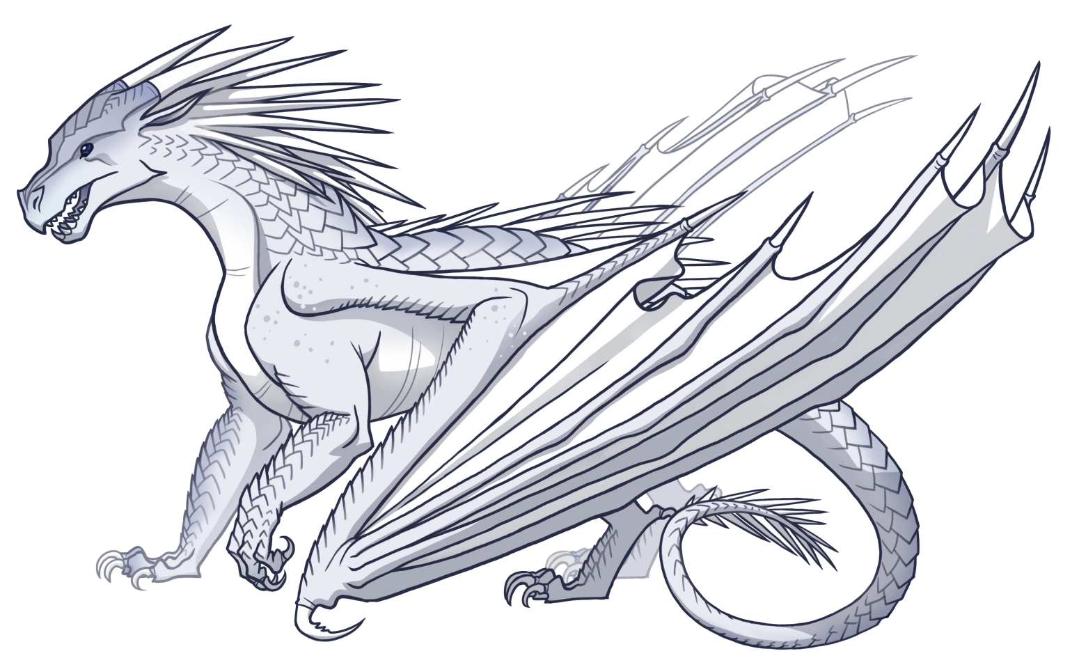 Glacier had white scales and arctic-blue eyes.[1] She was tall[1] and was described by Winter to be huge, majestic, and the most beautiful and imposing queen in Pyrrhia.[2]