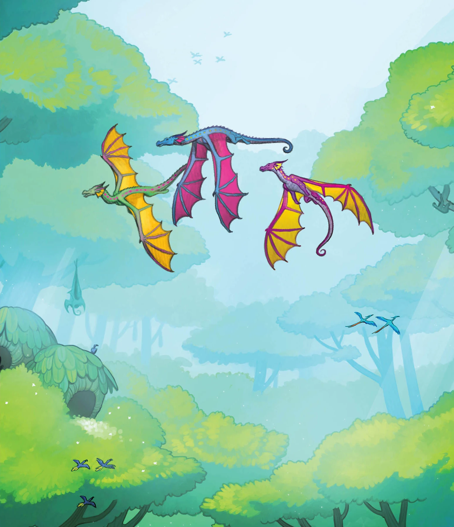 The RainWing village from A Guide to the Dragon World, by Joy Ang