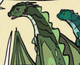 Turtle has unblemished,[3] jewel-toned,[4] dark emerald-green scales with lighter green underscales[5] and hints of gold in his dark green eyes.[6] He is a little plump, with an extra curve to his snout and upper arms,[5] and has large talons.[7] He wears a waterproof pouch around his neck[8] and a golden armband studded with sparkling[8] skyfire rocks[5] — originally six, but now reduced to three. His bioluminescent scales emit a pale green light,[9] and he has a low, rumbly voice.[10] He has a round,[11] anxious face,[9] and he heavily resembles Fathom.[12] He has spirals and shapes like webbed talon prints along his wings that are luminescent and oddly beautiful.[13]